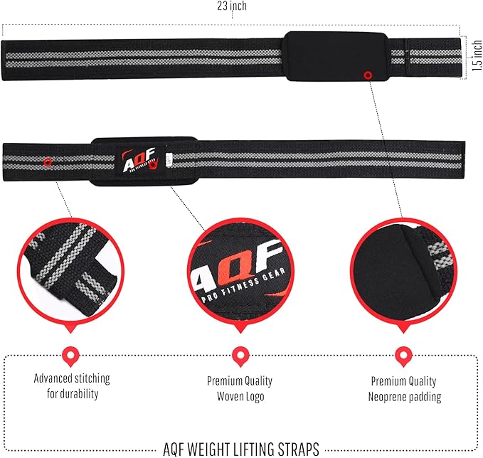 - SUPERIOR WRIST SUPPORT: AQF lifting wrist straps provide excellent gym wrist support, strengthening your grip, reducing stress on your forearms, and enabling more reps. Ideal for deadlifts, rows, pull-ups, weighted chin-ups, and other strength training & bodybuilding workouts.