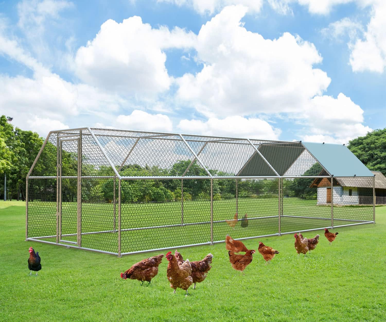 1.26’’ Large Metal Chicken Coop Walk in, Chicken Pen for Chickens, Outdoor Chicken Runs Coops Dog Kennel, Flat Roofed Chicken Runs for Yard with Anti-Ultraviolet Cover (9.2’L x 25’W x 6.4’H)
