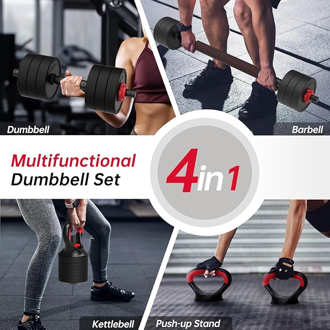 - 4 in 1 Multifunctional Dumbbell Set: Our Joroto dumbbells set could be used as barbells, kettlebells, and push-up stands. With it , you could perform a variety of weight training exercises such as bench press, squats, push-ups, and more. Add it to your home gym now!