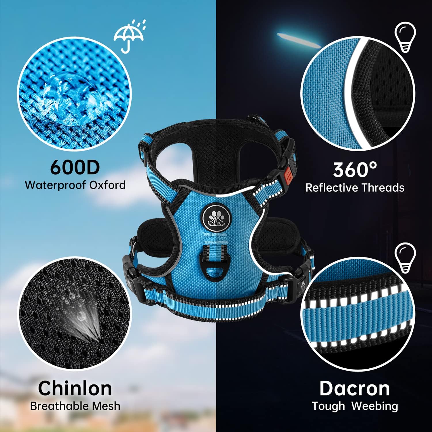 - 【SELECTED ACCESSORIES】 Our no pull harness includes 1 professional dog leash & 1 retractable seatbelt & 1 storage strap, which makes walking dogs a pleasure. We provide several size harnesses for small dogs to large dogs, more details please refer to the sizing chart