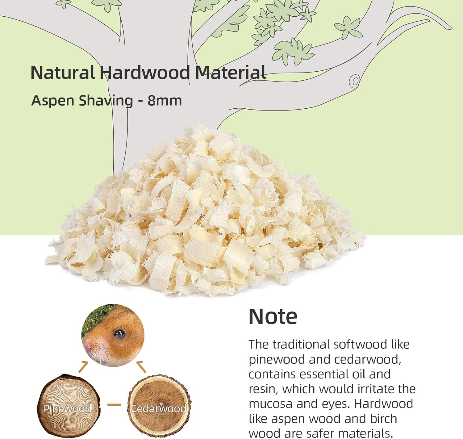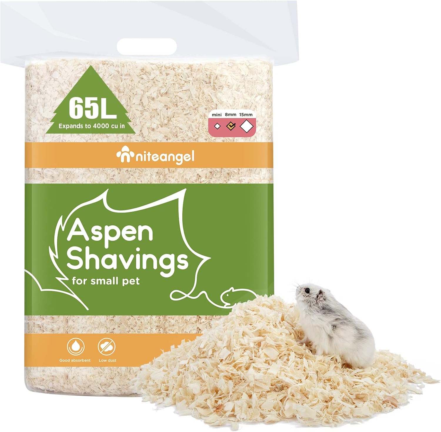 - [Soft Texture & More Comfortable] Niteangel tiny pet aspen bedding is made from natural Aspen wood and safe for small pets. The soft fluffy texture allows your critters to play freely on the aspen shavings bedding. The small pet bedding is not only good at absorbing the annoying smell of the cage, but also gives the hamster a natural and comfortable habitat.
