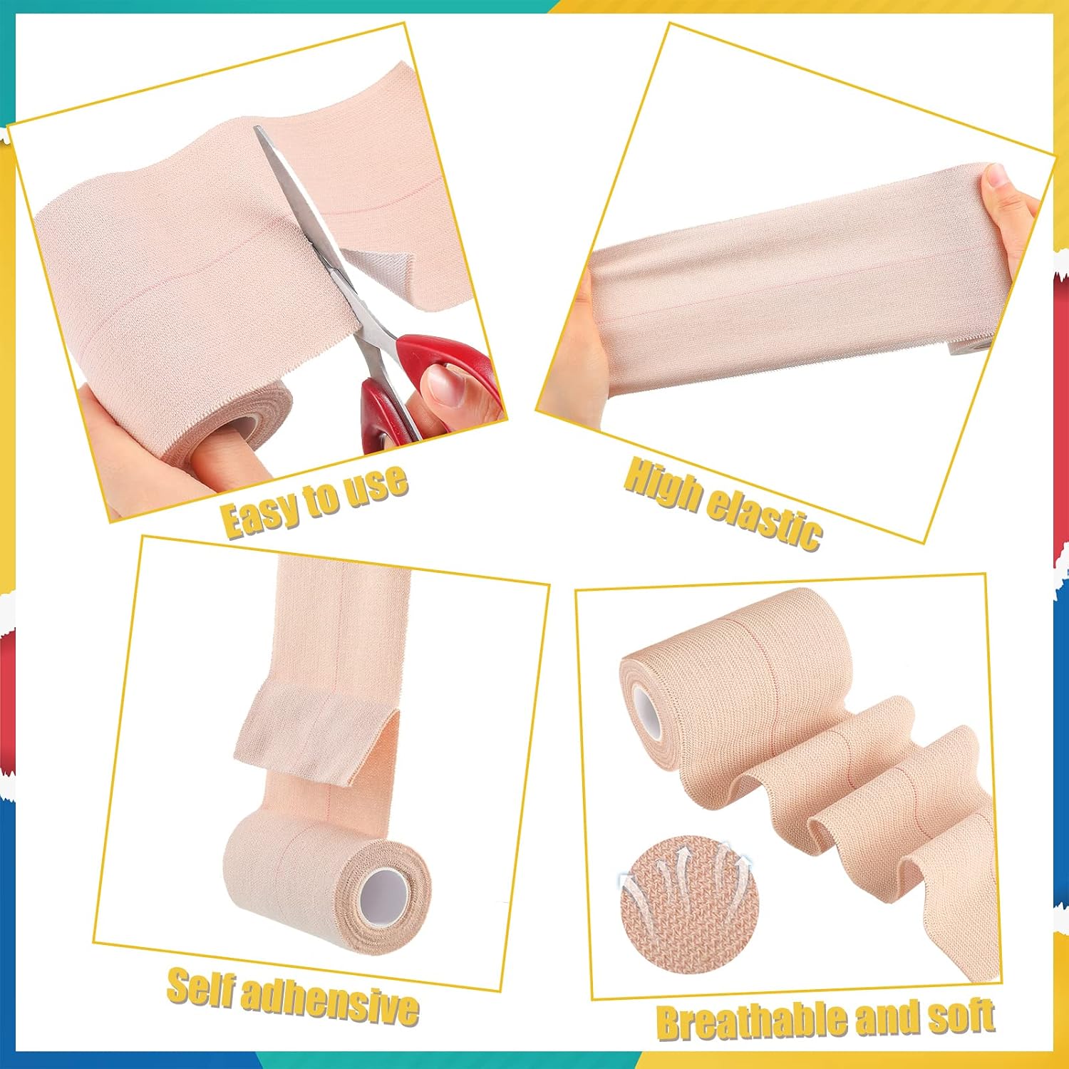4 Rolls Elastic Tape Adhesive Elastic Tape Self Adhesive Bandage Wrap Flexible Stretch Bandages for Sports Ankle, Knee and Wrist Sprains Animal Pets, 5 Yard (4 Inch in Width)