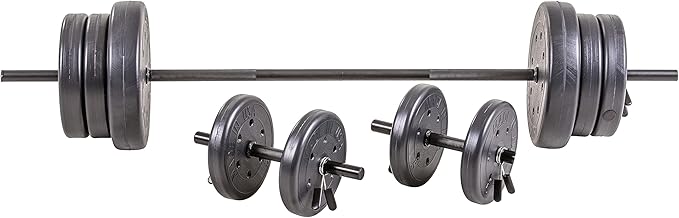- Comprehensive workout set: This 105 pound set includes a full 6 ft bar and two dumbbell bars, offering a complete workout experience. Perfect for all your weight lifting needs.