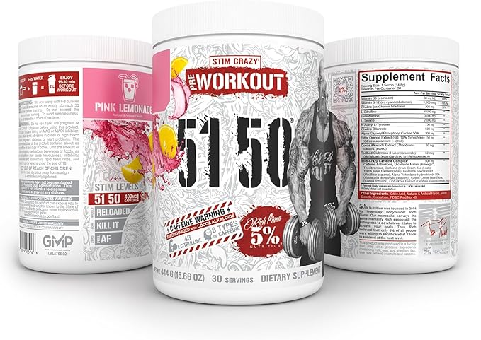 5% Nutrition Rich Piana 5150 High Stim Pre-Workout Powder | Extreme Energy, Focus, Pumps & Endurance | 400 mg Caffeine, Citrulline, Beta Alanine, N-Acetyl L-Tyrosine | 30 Srvgs (Pink Lemonade)