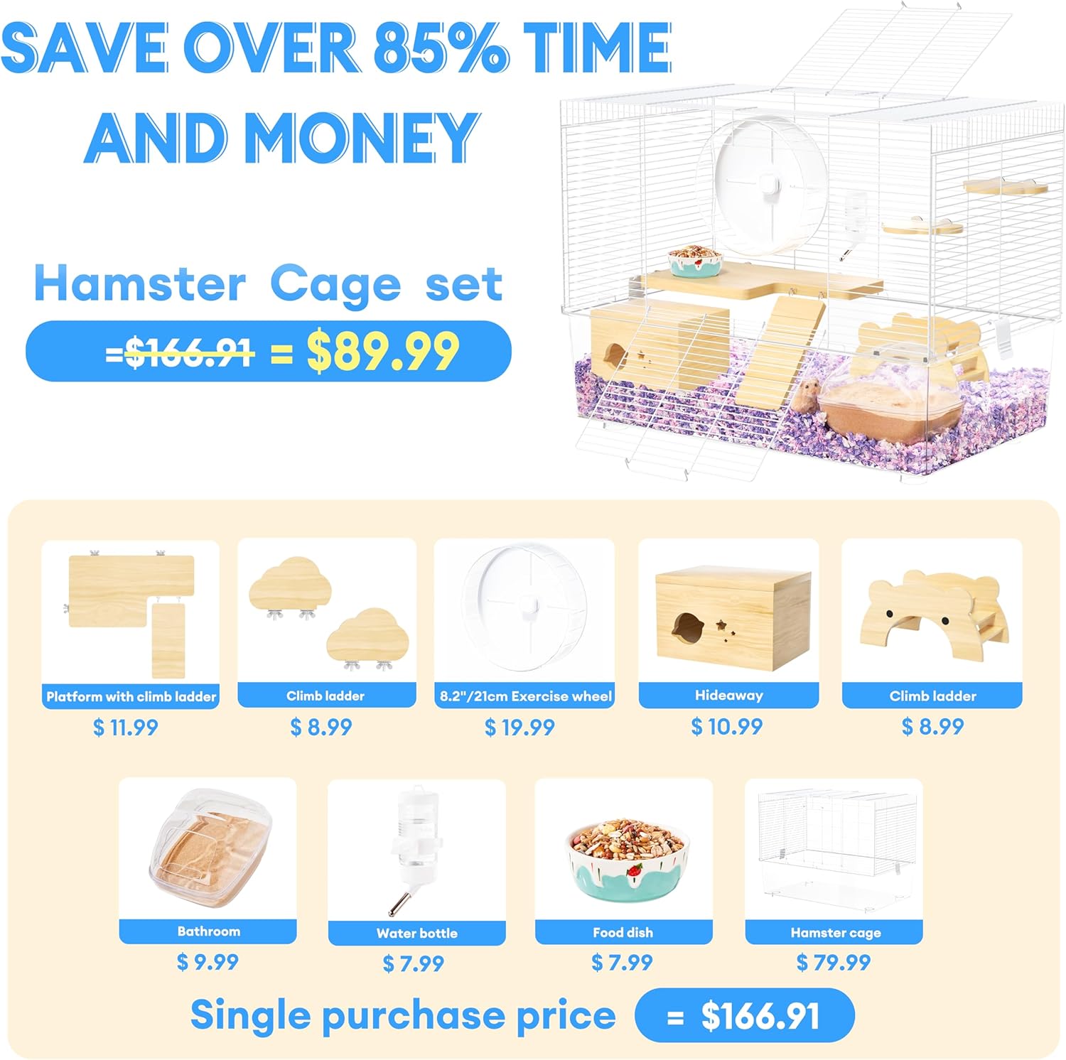 BUCATSTATE Hamster Cage 3-Level with Accessories, Includes Free Exercise Wheel, Water Bottle, Food Bowl & Hamster Hideout, Large Hamster Cage for Dwarf Hamster, Mice, Degus (24.4" L*13.7 "W*16.9" H)