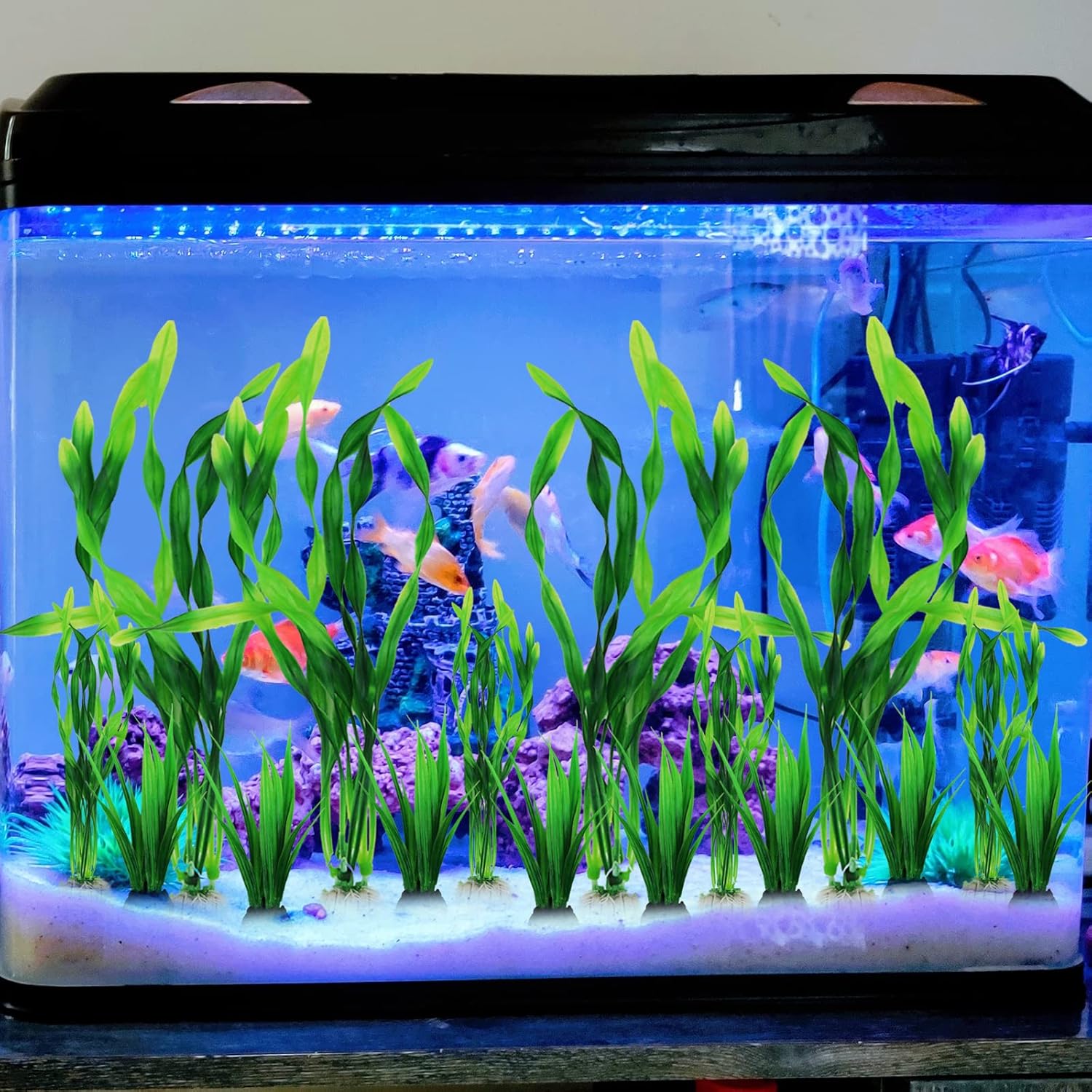 - Green Aquarium Decorations: 16 Pieces aquarium Green plants, small to medium.