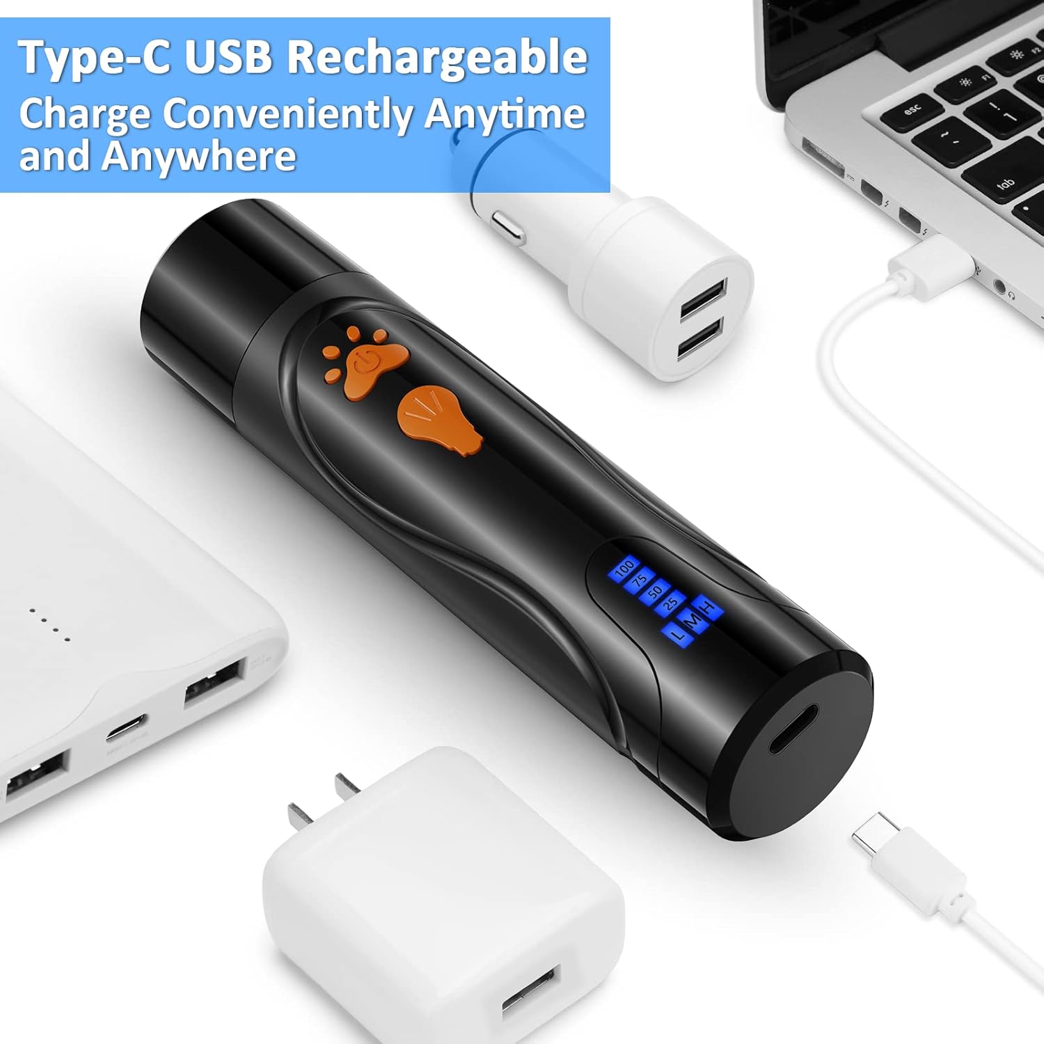 - 🟩 LED Lighting, Power Percentage Display🟩 : 2 LED bulbs help locate the quick easily and therefore avoid hurting nail quick. Remaining power is displayed by percentage, reminding dog / cat persons to recharge timely and avoid sudden power interruptions during nail trimming