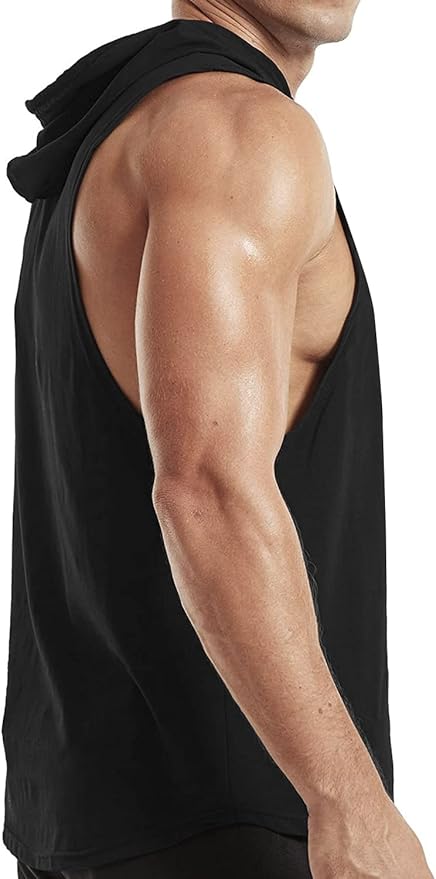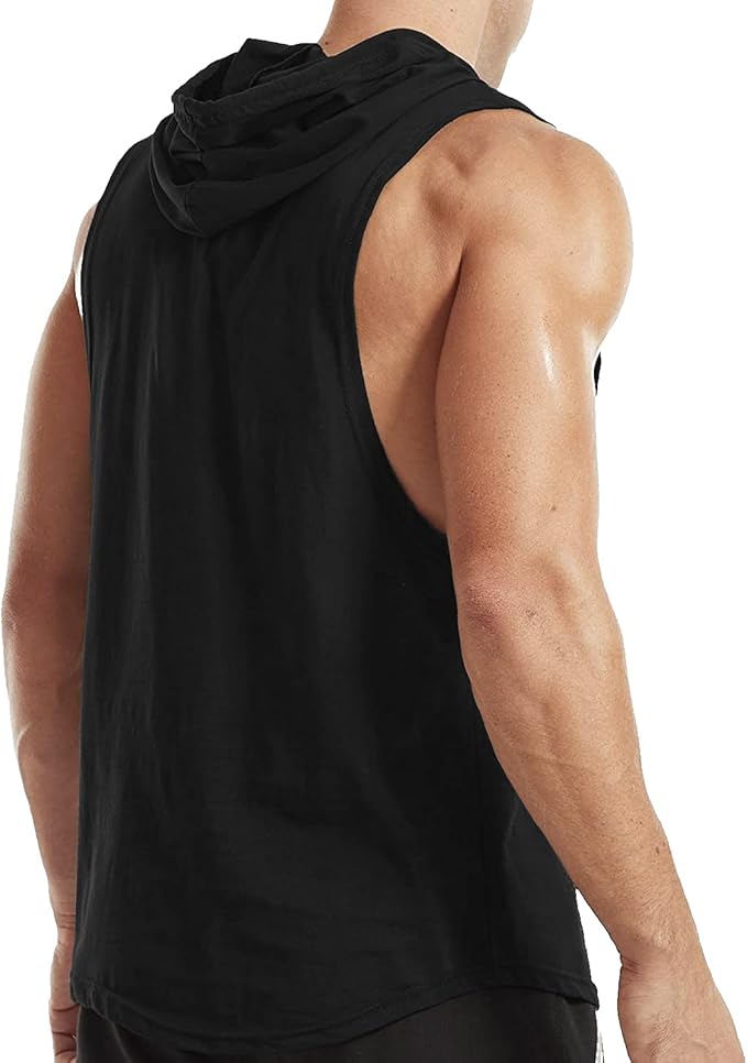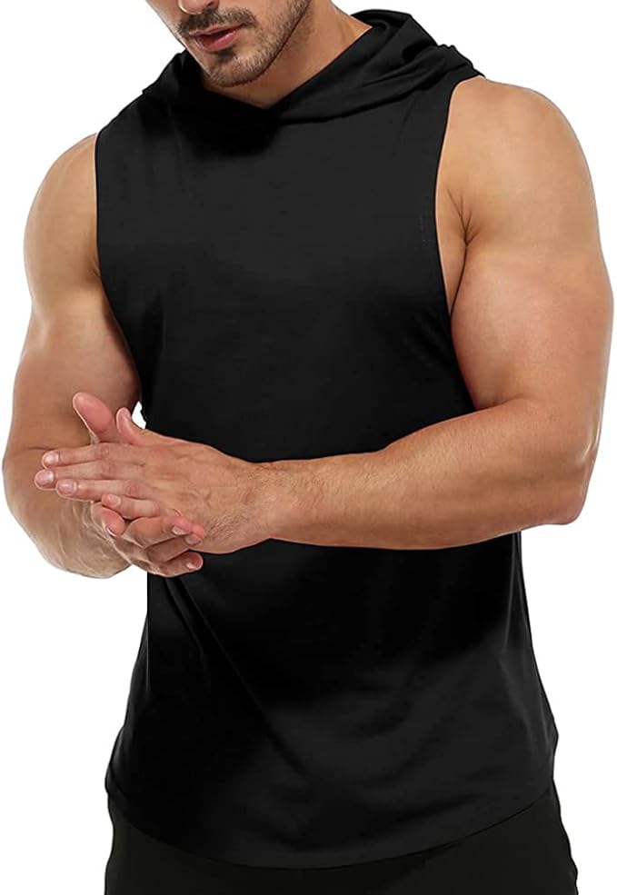 Men's Workout Bodybuilding Hoodies Tshirt Athletic Training Tank Tops Cotton Gym Hooded Top Cut Off Sleeveless Muscle T-Shirt