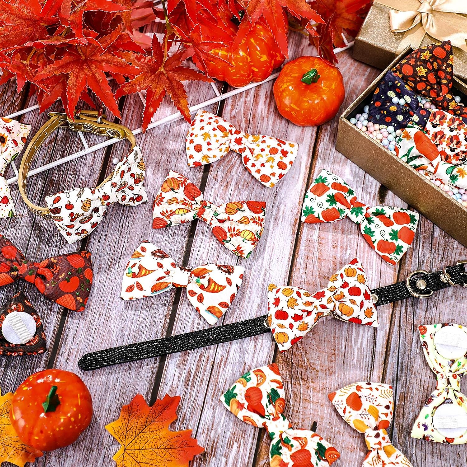 - Thanksgiving Elements: cute pet ties and pet bow ties using Thanksgiving style; Surface printed with pumpkins, hats, food and other patterns, beautiful and generous, the surface is fresh and cute, adding a lot of daily and festival atmosphere