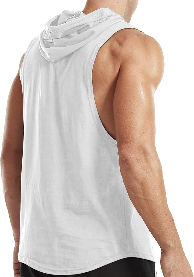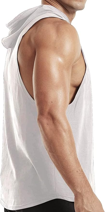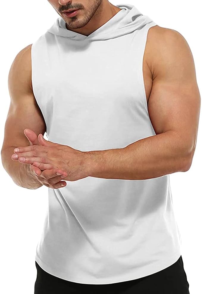 Men's Workout Bodybuilding Hoodies Tshirt Athletic Training Tank Tops Cotton Gym Hooded Top Cut Off Sleeveless Muscle T-Shirt