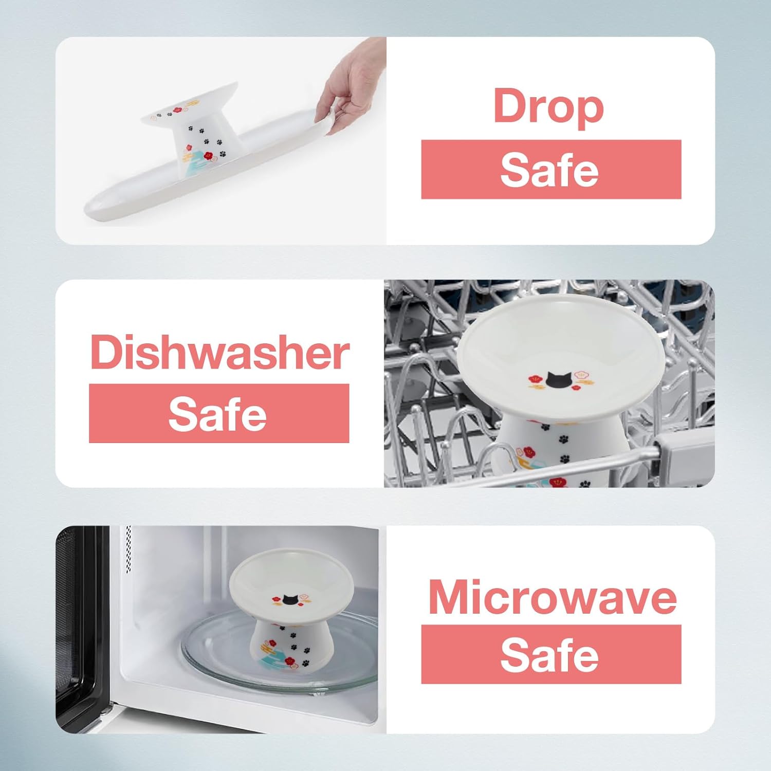 - Safe, Durable & Easy to Clean: Made from high-quality porcelain, free from lead and cadmium; meets strict US, EU, and Japanese safety standards; microwave and dishwasher-safe porcelain ceramic cat bowl.