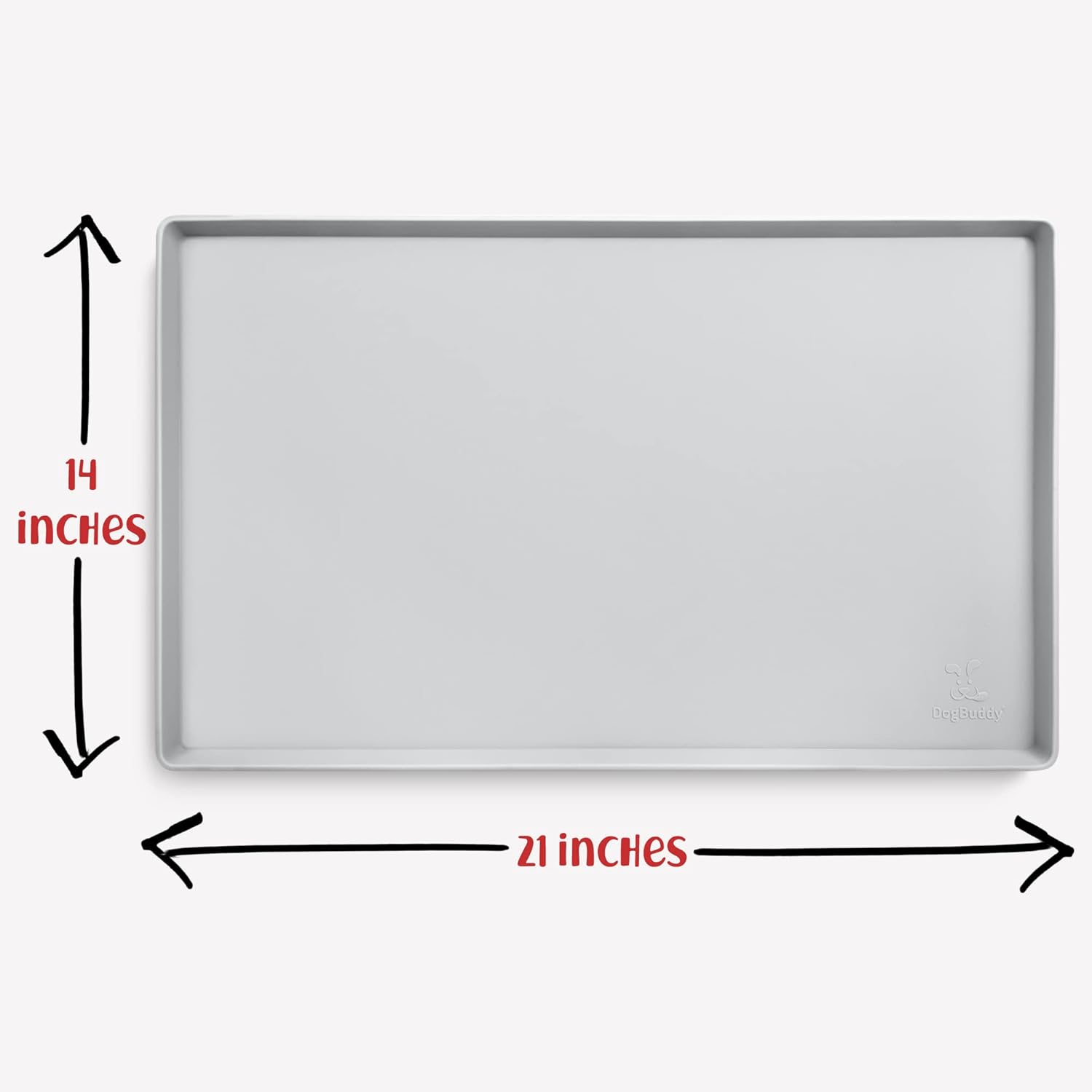 - Less Mess & Less Stress: Super high edge (0.6”) of DogBuddy Dog Food Mat keeps the spilled food and water on the mat and away from your beautiful floor. Silicone is naturally 100% waterproof, so what happens on the mat stays on the mat.