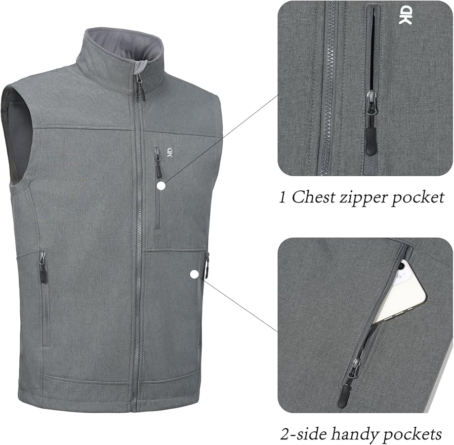 - Outdoor Vest for Men ---- This men's vest is made of soft shell fabric which is smooth with a little stretch, wipes off easily and is washable. Resists abrasion and scratches, great for work and outdoor activities such as golf, running, jogging, hiking, fishing, climbing, cycling, traveling,workout and so on. Keeping you warm and comfortable