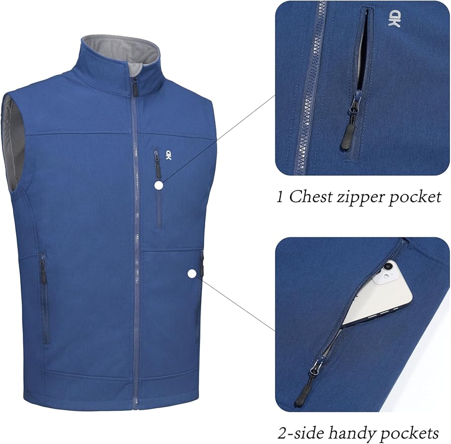 • Outdoor Vest for Men ---- This men's vest is made of soft shell fabric which is smooth with a little stretch, wipes off easily and is washable. Resists abrasion and scratches, great for work and outdoor activities such as golf, running, jogging, hiking, fishing, climbing, cycling, traveling,workout and so on. Keeping you warm and comfortable