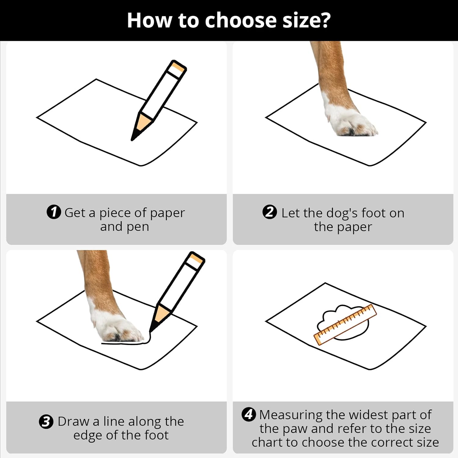 - 【Size 6】: 2.55''x2.95''(W*L).for 52-70(lbs).Great for all kinds of dogs.Place your pet's paws on paper; Mark the width of the paws, including the toes and nails,Except for the hair;Please refer to the picture size chart to choose the right size for your puppy.