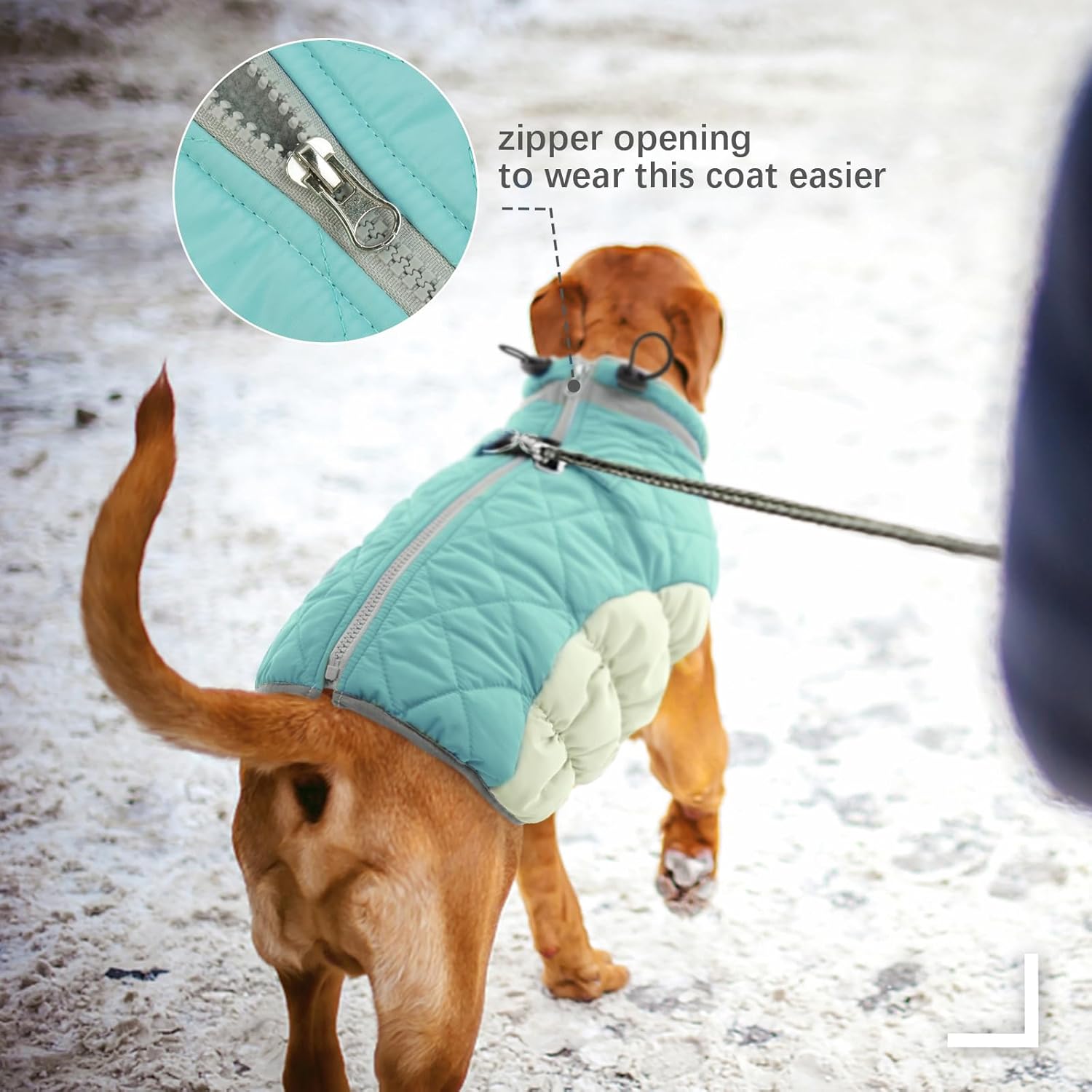FUAMEY Dog Coat for Large Dogs,Waterproof Dog Winter Jacket with Harness Built in Puppy Cold Weather Coats Reflective Pet Vest with Zipper Warm Fleece Dogs Snowsuit Windproof Mint Green XL