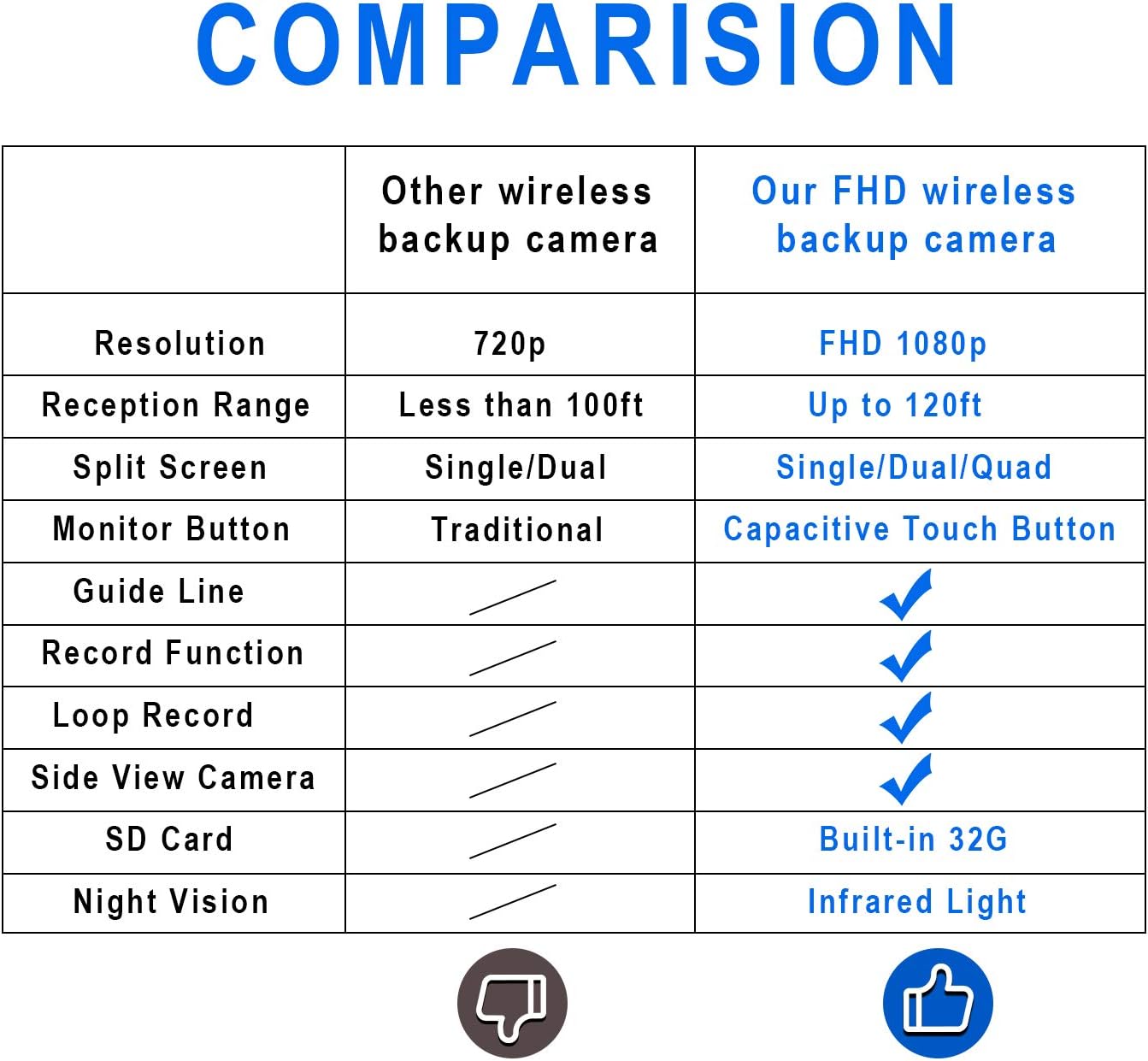 - 【Wireless Side View Camera & Recording】The Side View Camera can monitor the blind spot on the passengers side. It can help you have zero blind spots. Support Single View Dual View or Quad View(CH1/CH2/CH4), you can switch to the mode you need. Built-in 32G SD card, can record thing on driving.