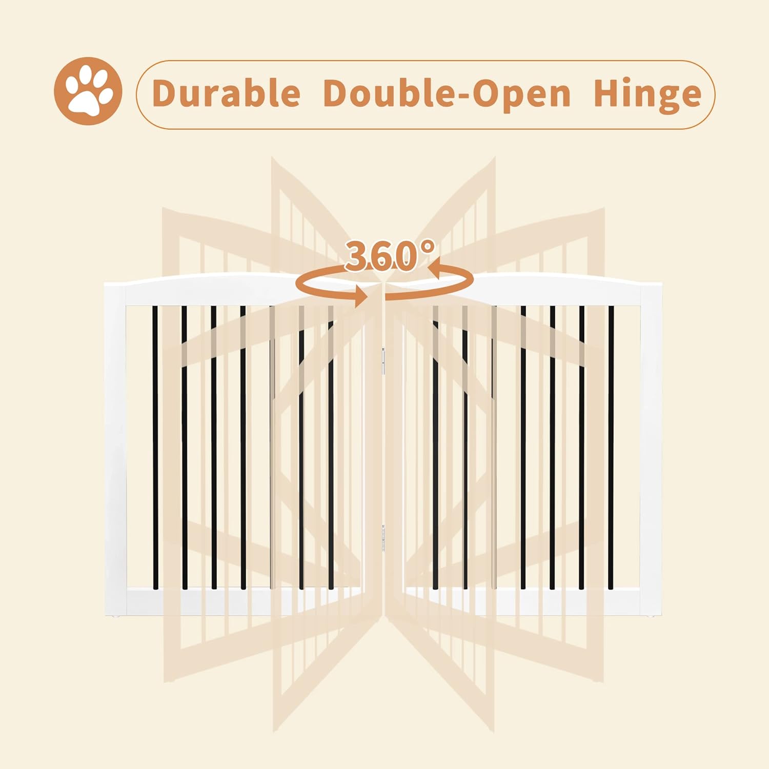 - 【FLEXIBLE FOLDING & STABILITY】: With flexible 360° hinges, this free standing pet gate can be fold in different shapes and barricade your pets in doorways, entryways, halls, bedrooms, stairs, kitchens, balconies. It is sturdy enough with exclusive support feet.