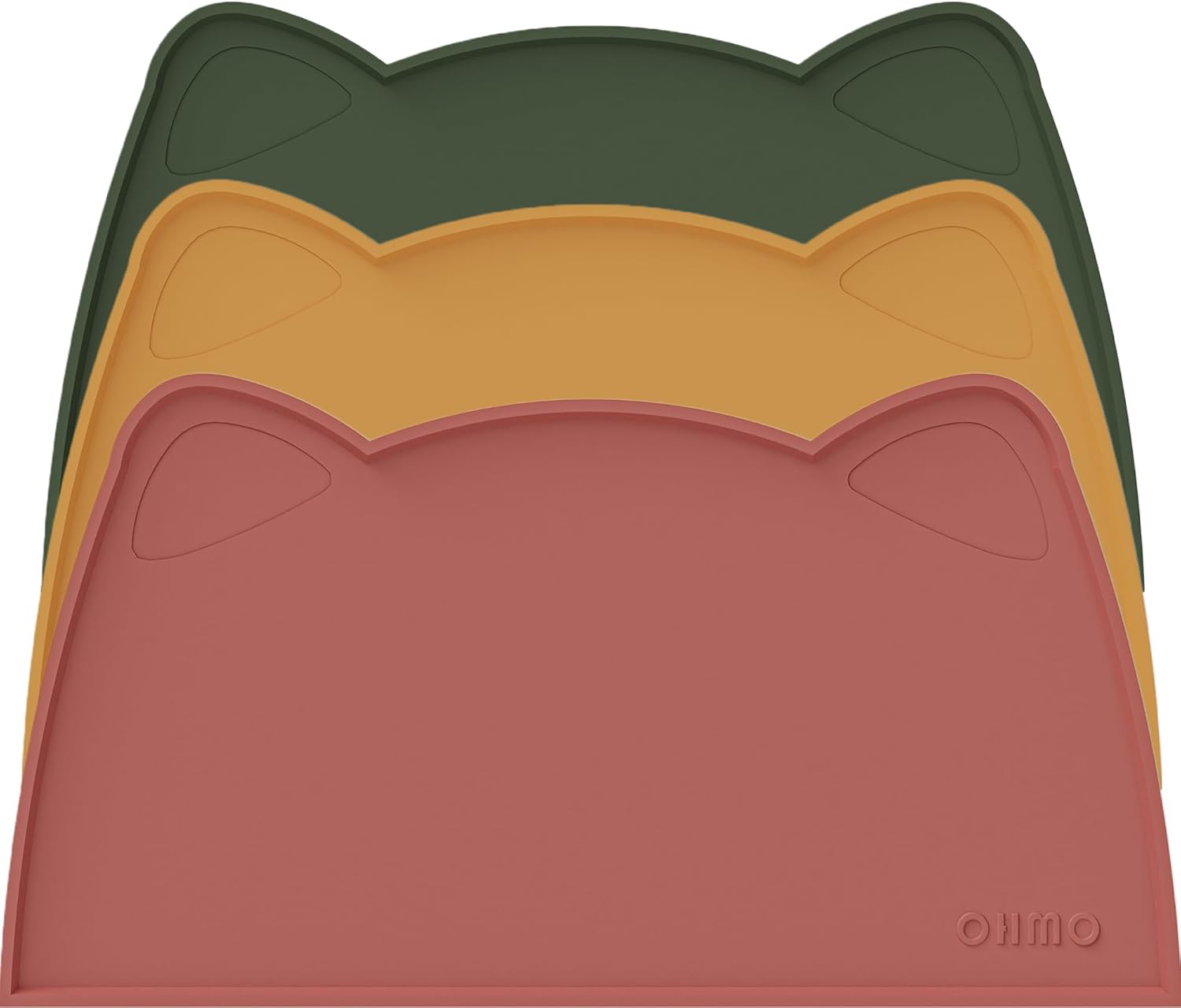 OHMO - Cat Food Mat, Silicone Pet Feeding Mat for Floor Non-Skid Waterproof Dog Water Bowl Tray, Easy to Clean Pet Placemat (Erythrinus, 18 * 9.8'')