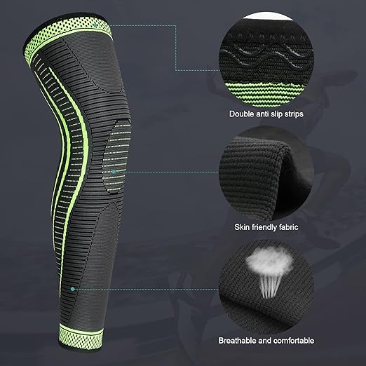 2 Pack Full Leg Compression Sleeves, Long Knee Brace Support for ACL,PCL, Meniscus Tear, Arthritis, Tendinitis, Joint Pain Relief, Men And Women (Green, Small)