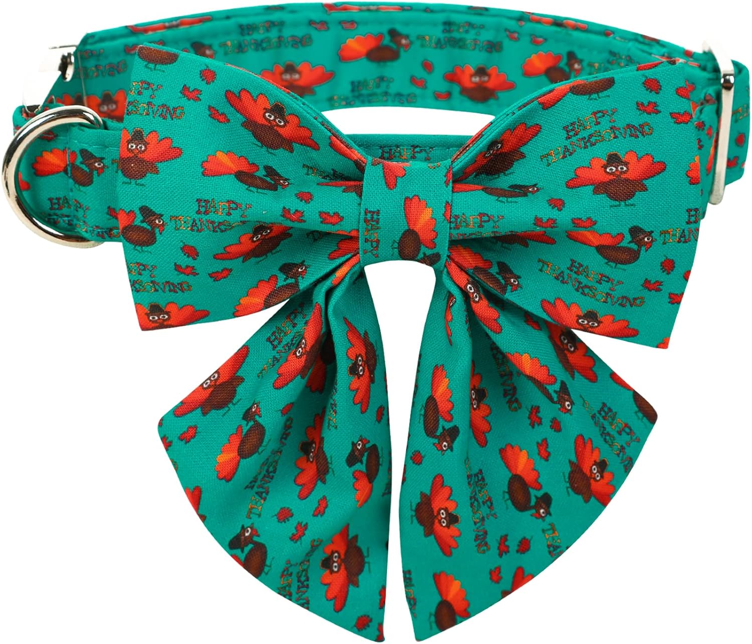 Lionet Paws Thanksgiving Day Dog Collar with Bowtie, Dog Sailor Bow Collar with Metal Buckle for Dogs and Cats, Adjustable Comfortable Dog Collar Girl Gift, S, Neck 10-16 in