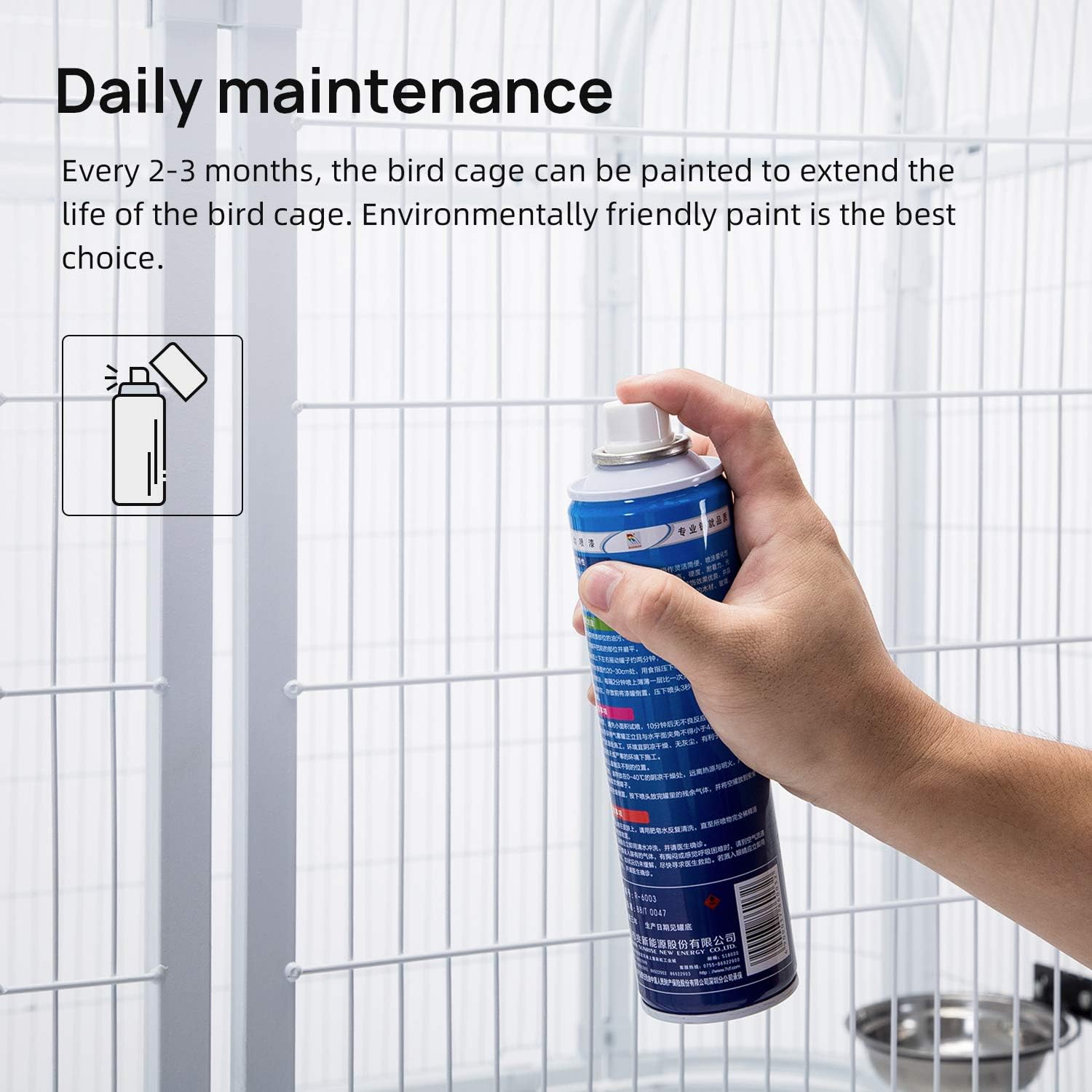 - Good Quality - Durable iron frame construction features excellent shock, rust, corrosion, tarnish resistance, which prolongs the service lifetime of the cage. Please do not expose the birdcage directly to rain. Otherwise it will rust easily. When it rains, please put on a birdcage cover or move indoors.
