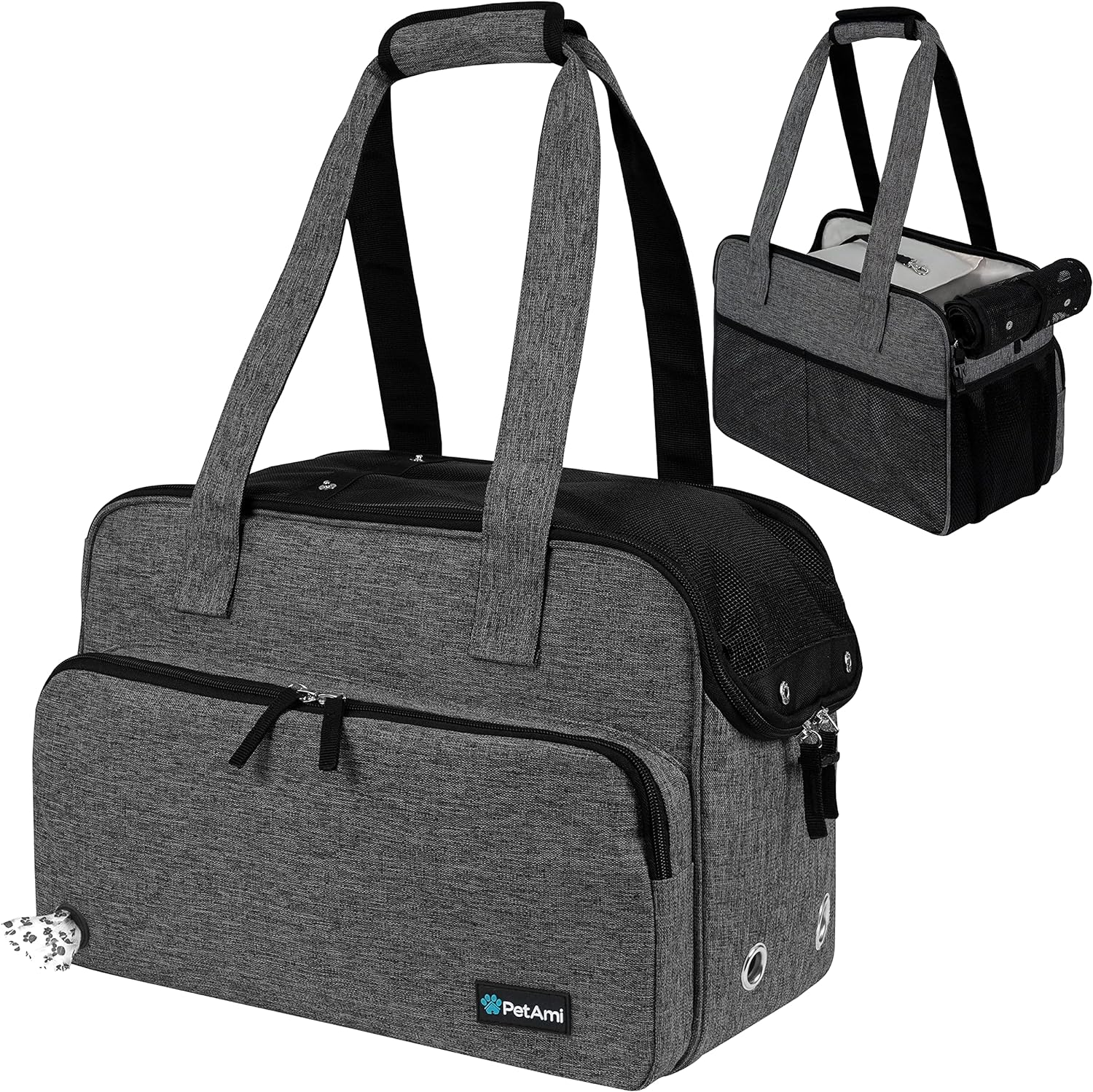 PetAmi Small Dog Purse Carrier, Soft-Sided Pet Carrier Bag with Pockets, Portable Puppy Cat Travel Handbag Tote, Airline Approved Breathable Mesh, Poop Bag Dispenser, Sherpa Bed, Max 18 lbs, Dark Gray