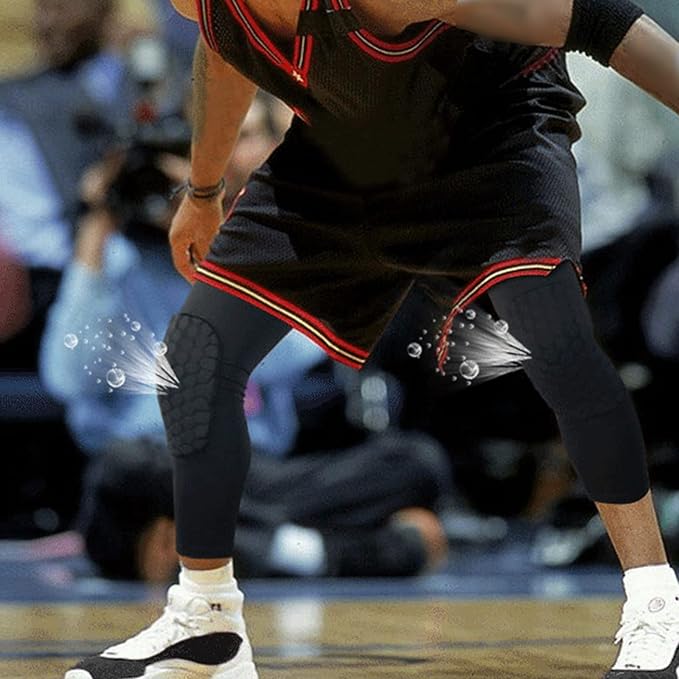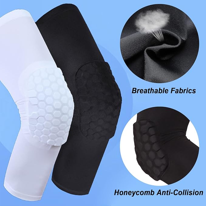 Laiiqi Compression Knee Pads Leg Sleeve, Hex Knee Pads for Basketball Honeycomb Anti Collision Knee Pads Long Kneepads Non-Slip Football Knee Pads for Youth Adult
