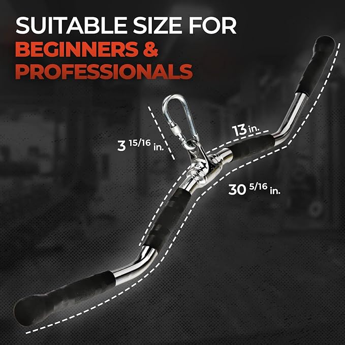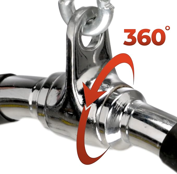 - KNURL TEXTURED RUBBER HANDLES FOR MULTIPLE EXERCISES: The knurled rubber covers on our tricep bar handles enhance workout comfort and prevent slipping, while the 360-degree rotating shackle provides smooth rotation for exercises targeting the lats, triceps, biceps, back, shoulders, and abs, helping improve balance as well.