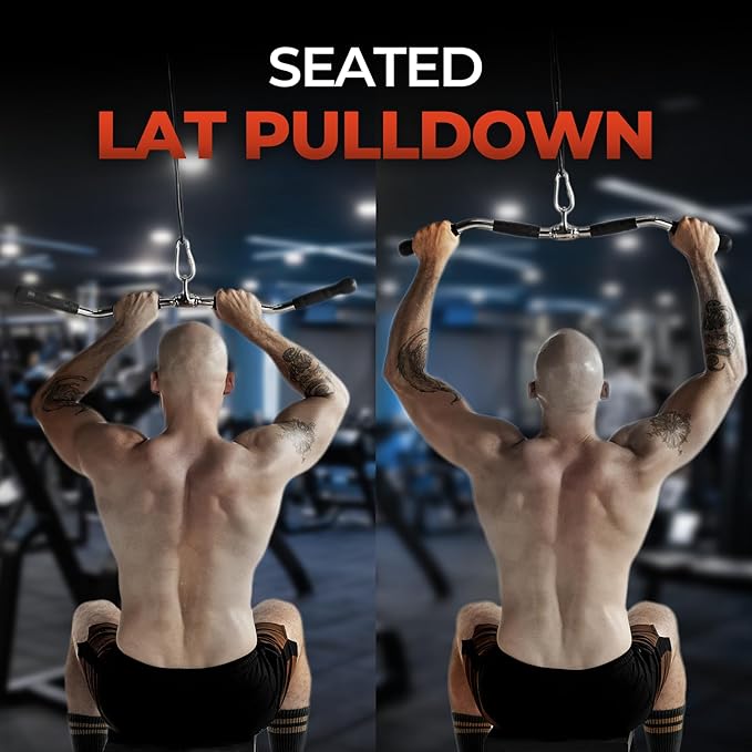 - THE YES4ALL LAT BAR: Attach to any pulley or cable weight machine and is ideal for several lat and upper body-focused exercises like lat pulldowns, straight-arm pulldowns, and more.