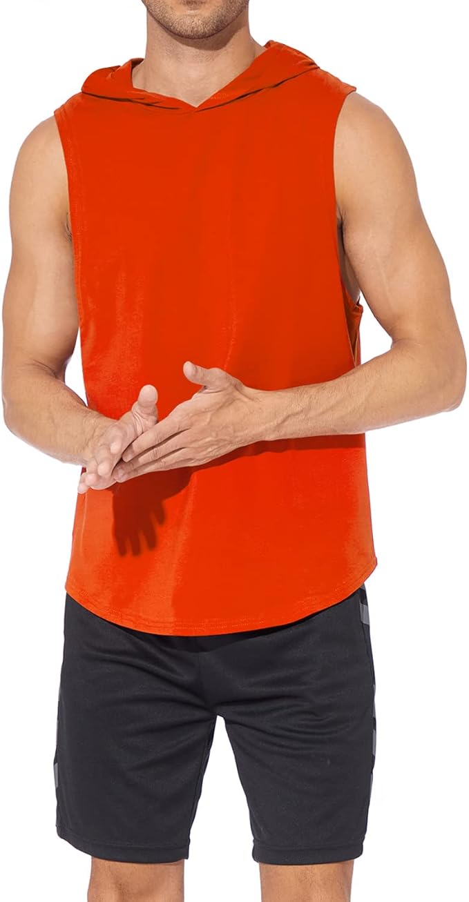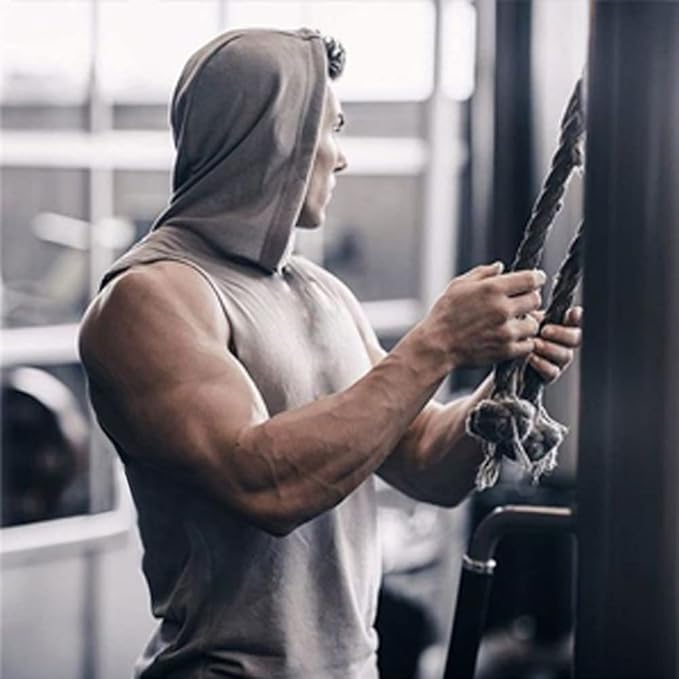 Men's Workout Bodybuilding Hoodies Tshirt Athletic Training Tank Tops Cotton Gym Hooded Top Cut Off Sleeveless Muscle T-Shirt