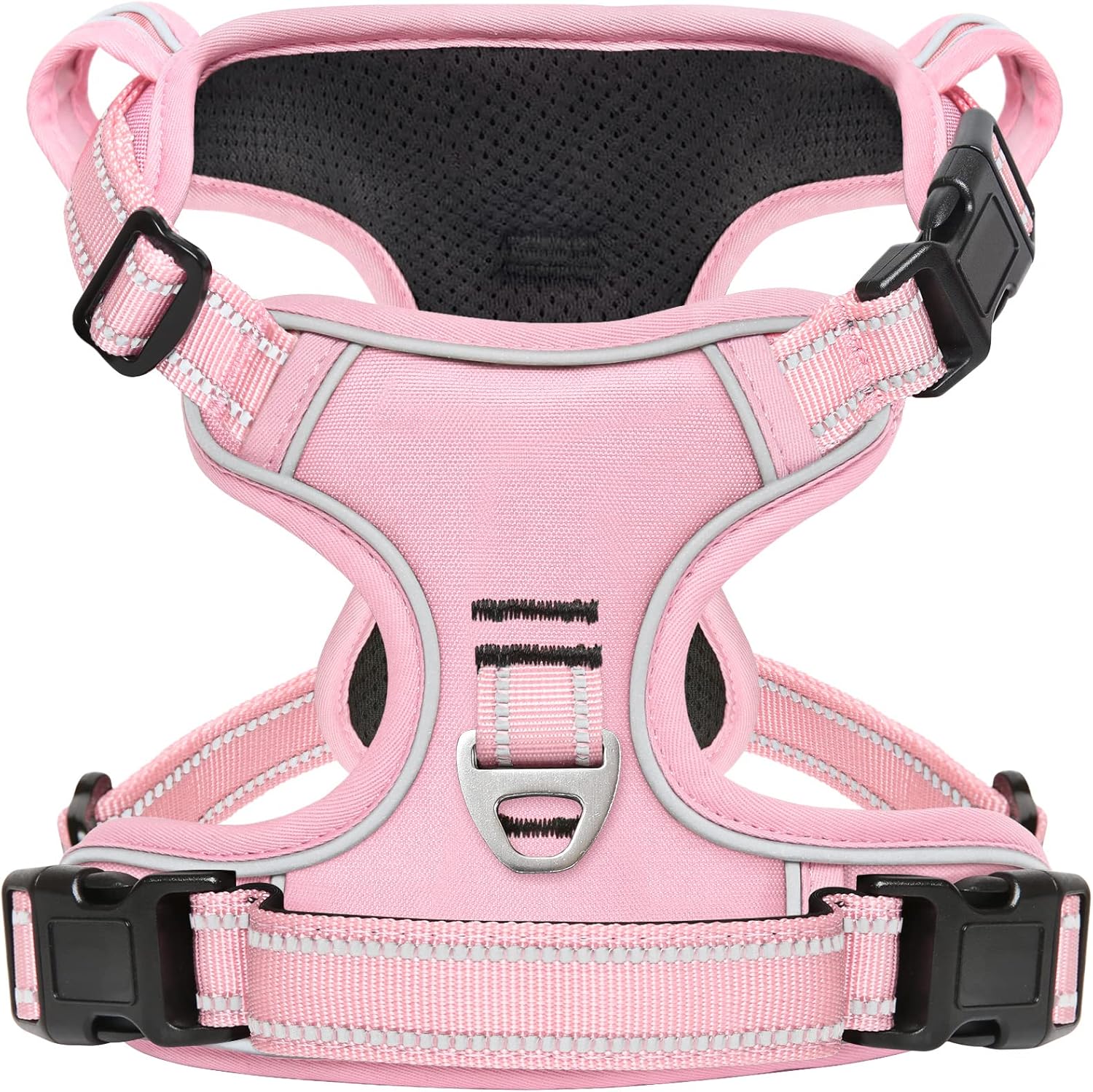 Timos Dog Harness, 3 Snap Buckles No-Pull Soft Padded Dog Vest with 2 Metal Leash Clips, Adjustable Reflective No Choke Pet Harness with Easy Control Handle for X-Small Dogs,Pale Pink,XS