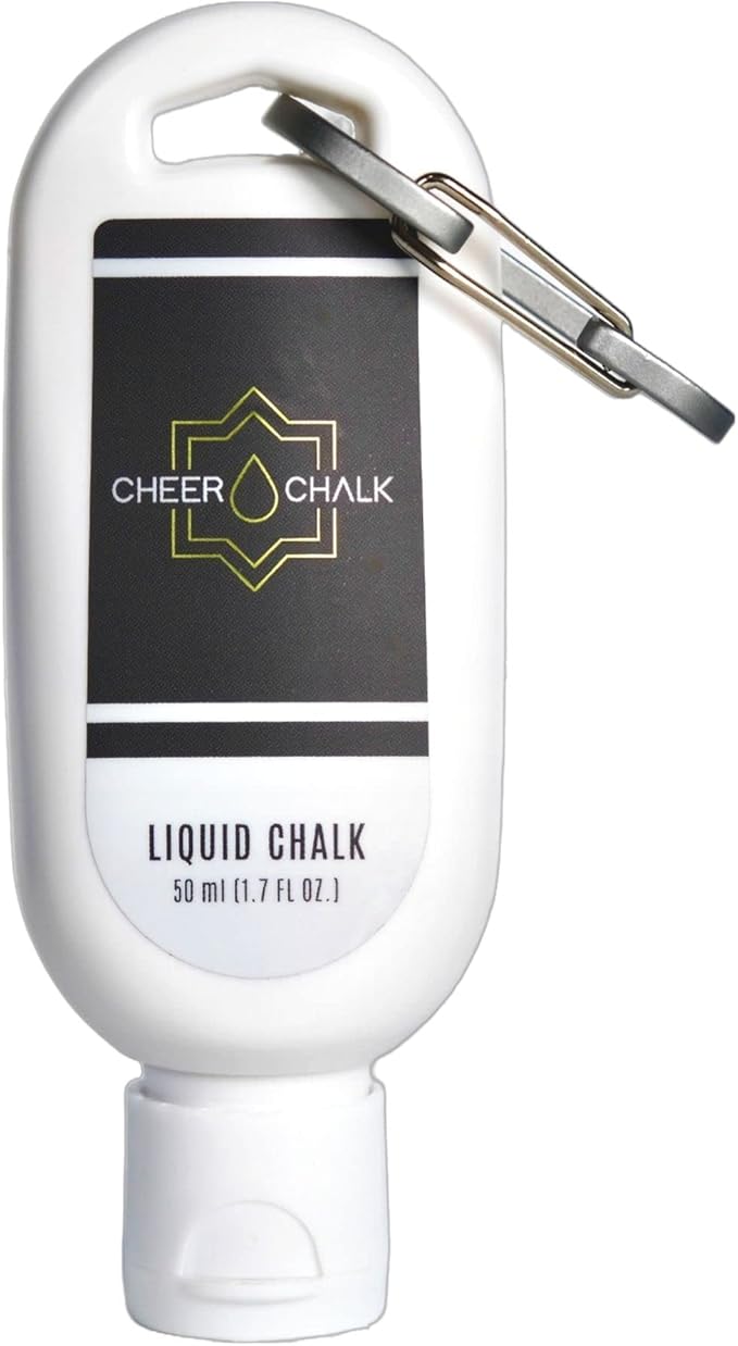 Liquid Chalk - Chalk for Elite Cheerleading - Chalk for Stunting - Chalk for Gymnastics - 50ml Bottle with Carabiner - 50 Practices Per Bottle - Maximum Grip for Safer Stunting