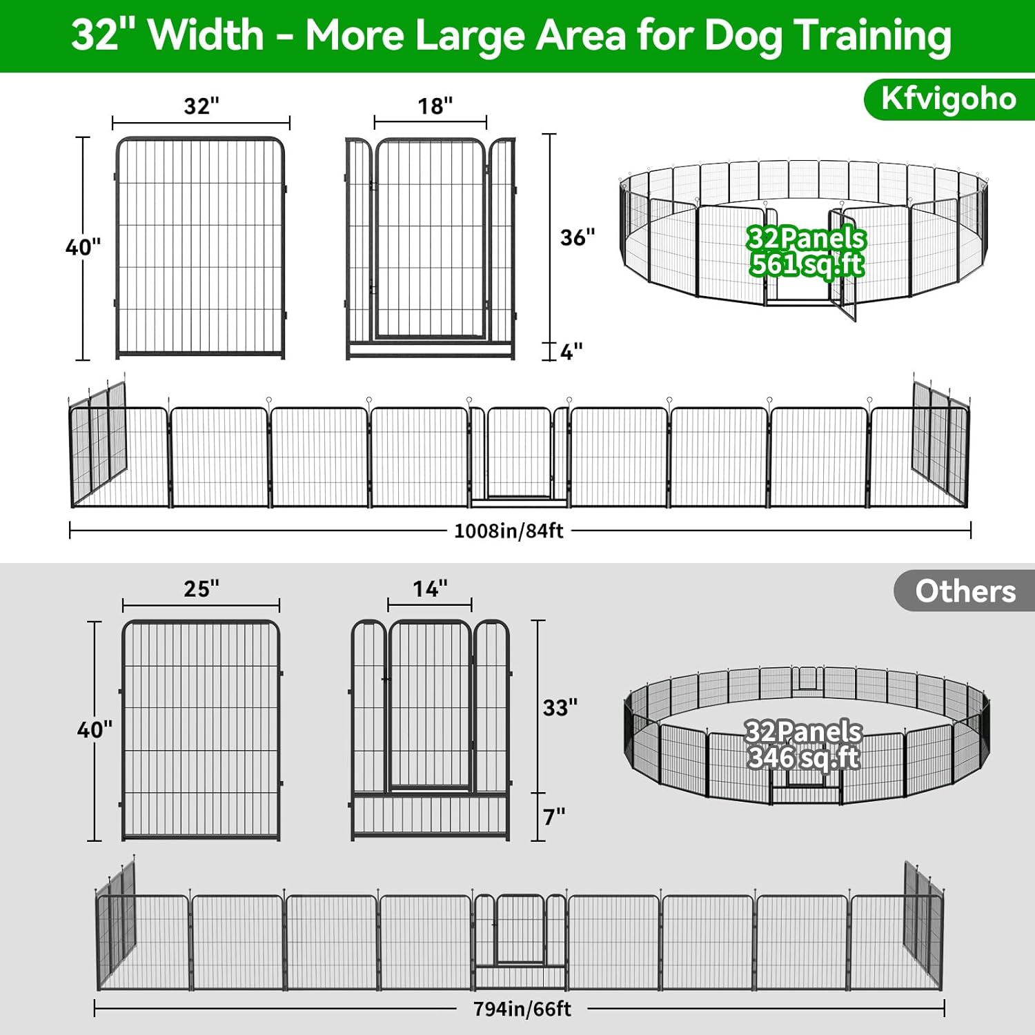 - 【Anti-Rust Coatings Material】Kfvigoho puppy playpen made of heavy-duty metal, sturdy and durable, steel wire smooth and solid, pet dogs couldn't damage or chew it, anti-corrosion coatings and rust-proof process helps panels works well outdoor and extend its life, the indoor and outdoor dog pen great for people with dogs