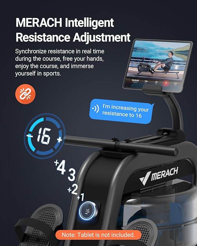- FREE MERACH APP: Our exclusive App offers you a variety of free, trainer-led exercise classes, and personalizes your entire fitness program. Combining HIIT methods, tracking your rowing progress is simple with real-time metrics like distance, time, calories, average BPM, and more. It is also compatible with KINOMAP APP.