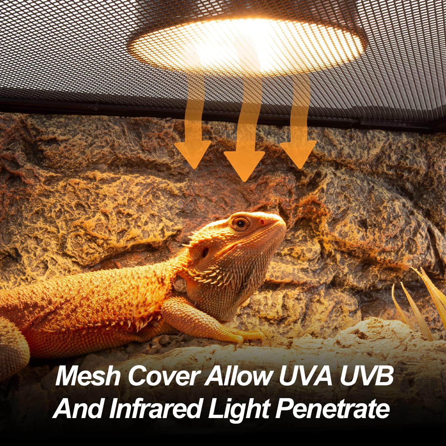 - 【Efficient Ventilation & Light Optimization】: The removable mesh ventilation top effectively allows visible light, UV, and infrared rays to penetrate, enhancing the tank's temperature, stabilizing humidity, and improving airflow. This design ensures your reptiles enjoy the most suitable living environment.