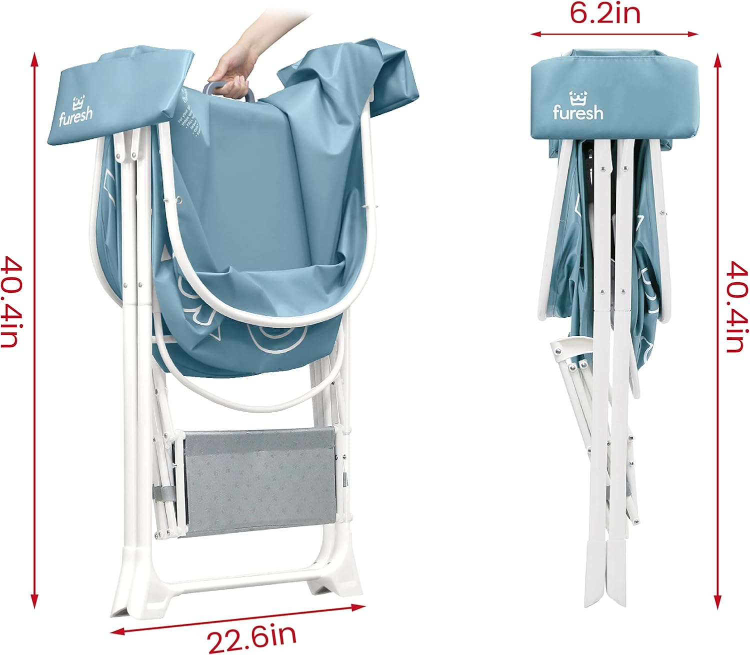 - 【FOLD IN SECONDS】Thanks to lightweight construction and patented folding mechanism, the tub can fold and deploy with one hand in seconds.All patents and copyright reserved. Pull the handle in the middle to fold it from 46.1" to 6.2" wide for easy storage. The tub's legs and stairs are removable to save more space in storage and transit