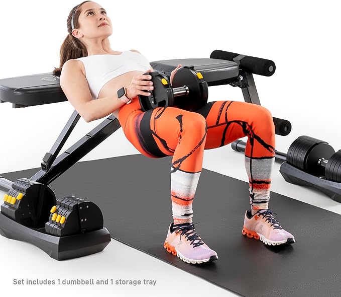 - Easily store your Marcy Adjustable Dumbbell System on the included fitted tray. Both the tray and the plates themselves show how much weight is on the dumbbell handle.