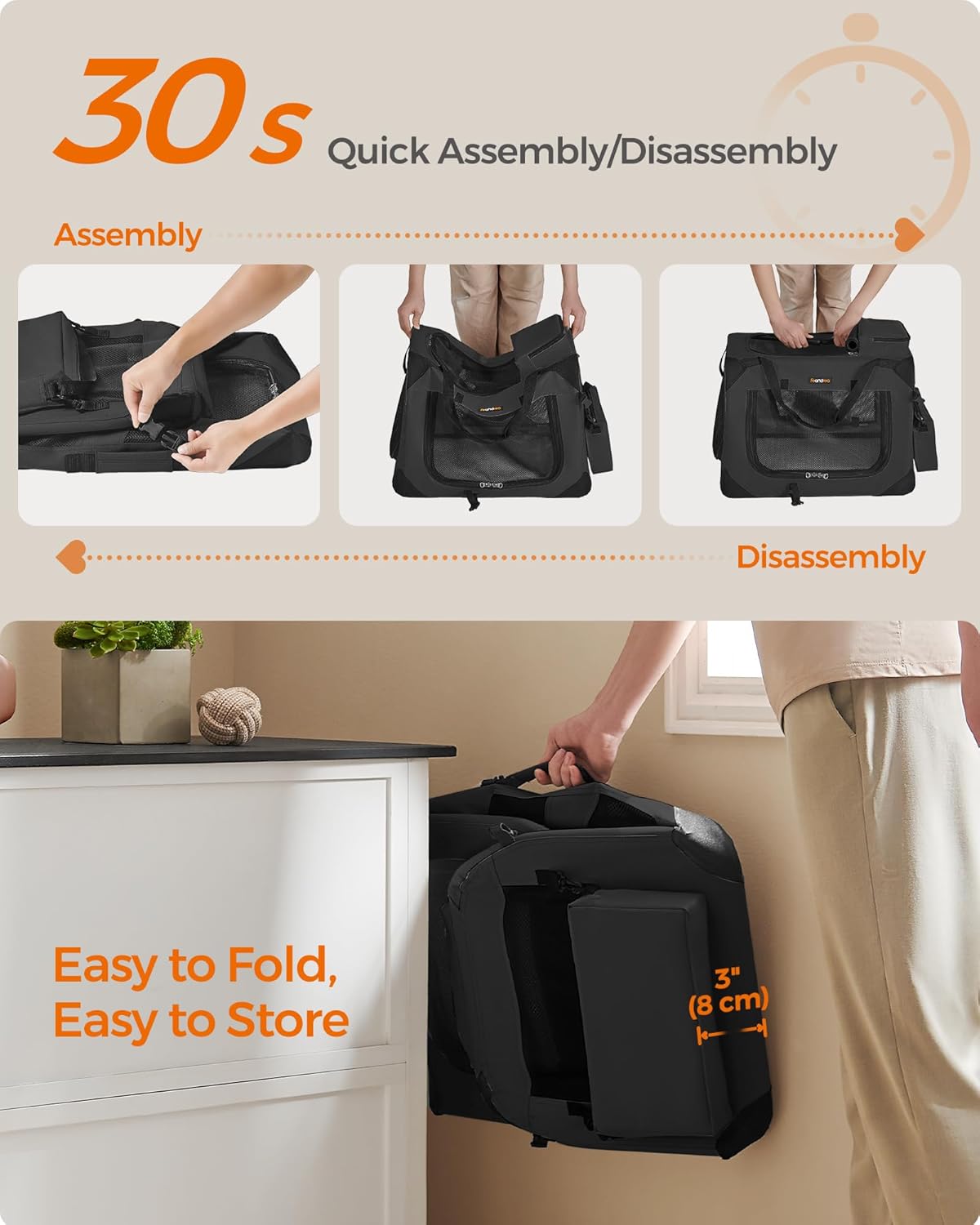 - 【ANTI-ESCAPE & STRONGER】Featuring self-locking zippers that ensure pets can't open it from the inside, the travel dog crate enhances safety while traveling. The thick steel frame and Oxford fabric are scratch- and tear-resistant for prolonged service life
