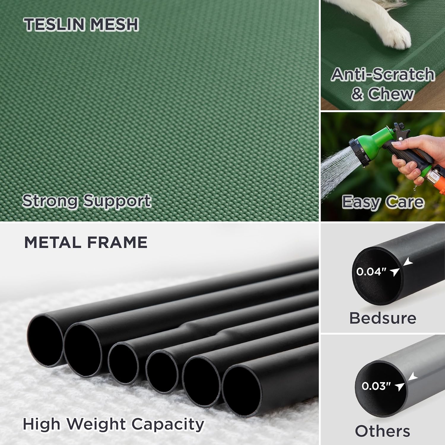 Bedsure Outdoor Elevated Dog Bed Large Sized Dog, Portable Indoor & Outdoor Cooling Raised Cot Pet Hammock Bed with Skid-Resistant Feet, Frame with Breathable Mesh, Green, 49 inches
