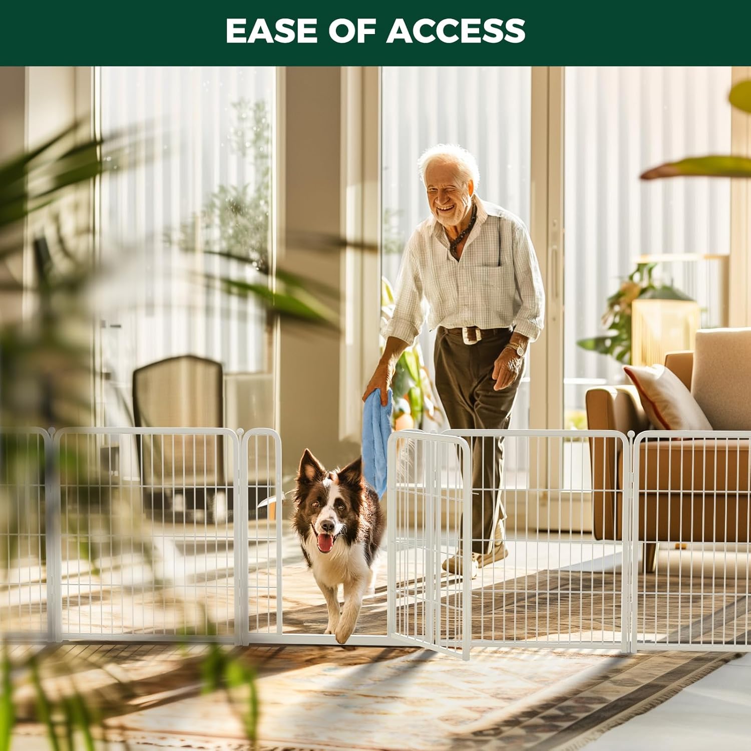 - Ease of Access: Threshold-free gate allows easy walk-in cleaning for humans and worry-free running for dogs.