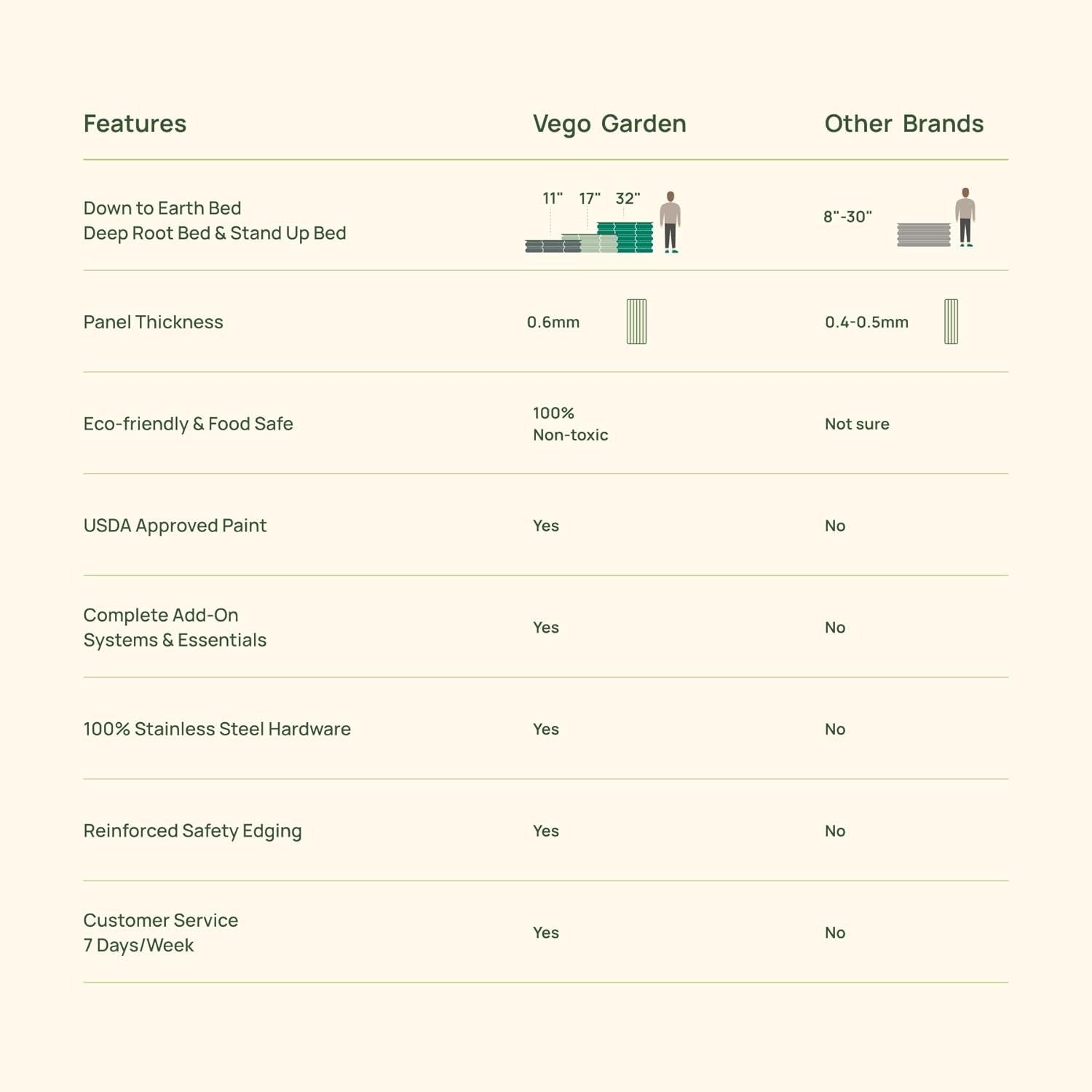 - Complete System: From the very beginning, Vego Garden has aimed to create unified gardening systems that start outside, in your garden, and extend all the way into your day-to-day today life. The team continues to develop more products and add-ons that enhance the Vego experience, such as cover system, worm composters, arched trellis, wall trellis, seeding trays and gopher net and so on. Beyond the physical product, education and community are an integral part of the Vego Garden system, we will continue to strive for these values from design to customer