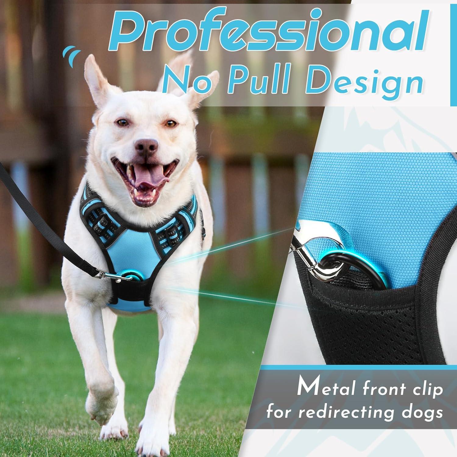 Eagloo Dog Harness for Large Dogs, No Pull Service Vest with Reflective Strips and Control Handle, Adjustable and Comfortable for Easy Walking, No Choke Pet Harness with 2 Metal Rings, Sky Blue, L