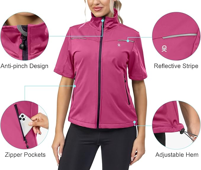 - OCCASIONS: Softshell golf windbreaker is suitable for travel, trail, running, outdoor hiking, camping, climbing, cycling, fishing, golf, traveling etc. Lightweight softshell short sleeve jacket can be worn as a mid layer on frigid days or an outer layer in mild cool weather.