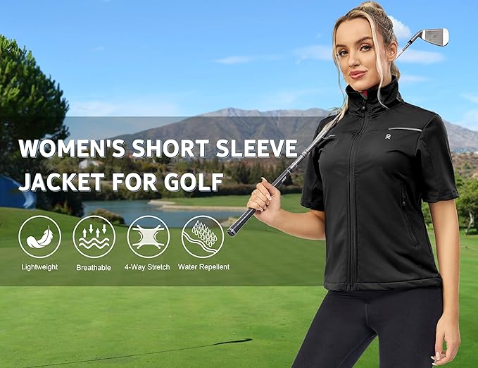 - OCCASIONS: Softshell golf windbreaker is suitable for travel, trail, running, outdoor hiking, camping, climbing, cycling, fishing, golf, traveling etc. Lightweight softshell short sleeve jacket can be worn as a mid layer on frigid days or an outer layer in mild cool weather.