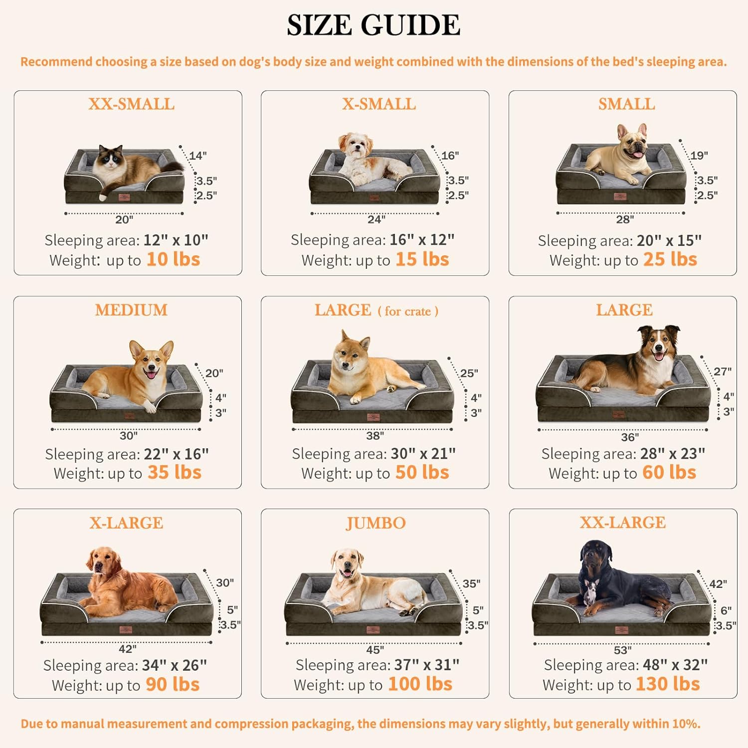 - SOFT SLEEP SURFACE: The sleeping area of the plush dog bed is 48 x 32 inchs, suitable for dogs weighing under 130 lbs, which gives the dog enough space to move. The surface is made of high quality PV plush, which feels comfortable and does not fluff or fade. The materials are gentle on skin, nose and paws.