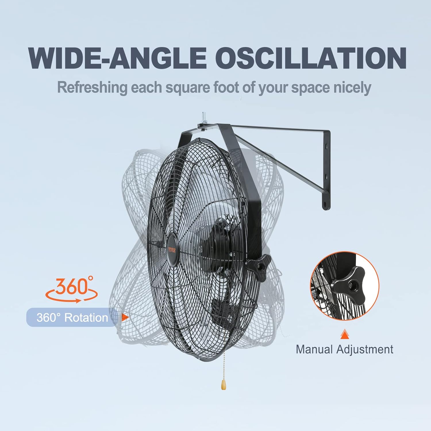 - Adjustable Wall Mounted Fan: Get ready to reach every corner of the room! The 18'' weatherproof wall fan can be tilted vertically for optimum airflow. Get ready for a complete heavy-duty metal construction with aluminum blades for easy disassembly and cleaning.