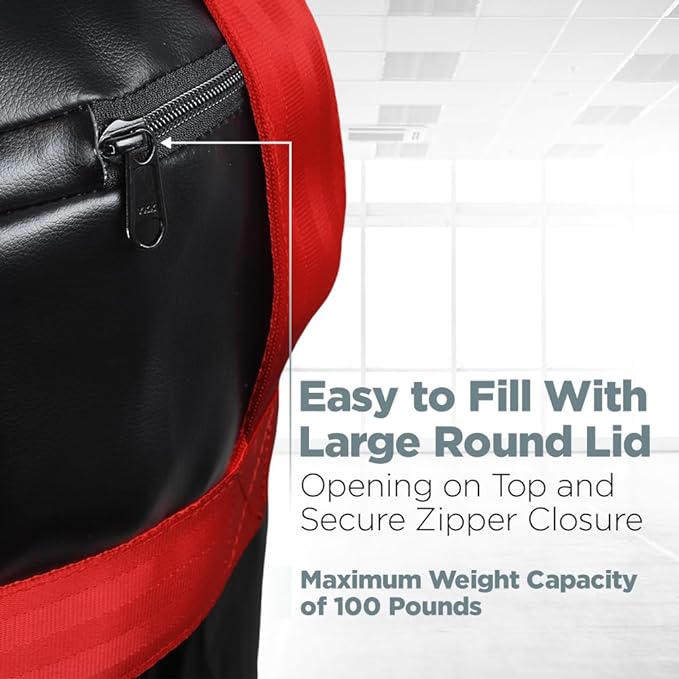 - UNFILLED Easy to Fill: LoGest’s Punching Bags features a large round lid opening on top, making it easy to fill and customize the bag to your own personal preference. Just add the desired amount of filling up to a maximum weight of 100 pounds and secure with zipper.