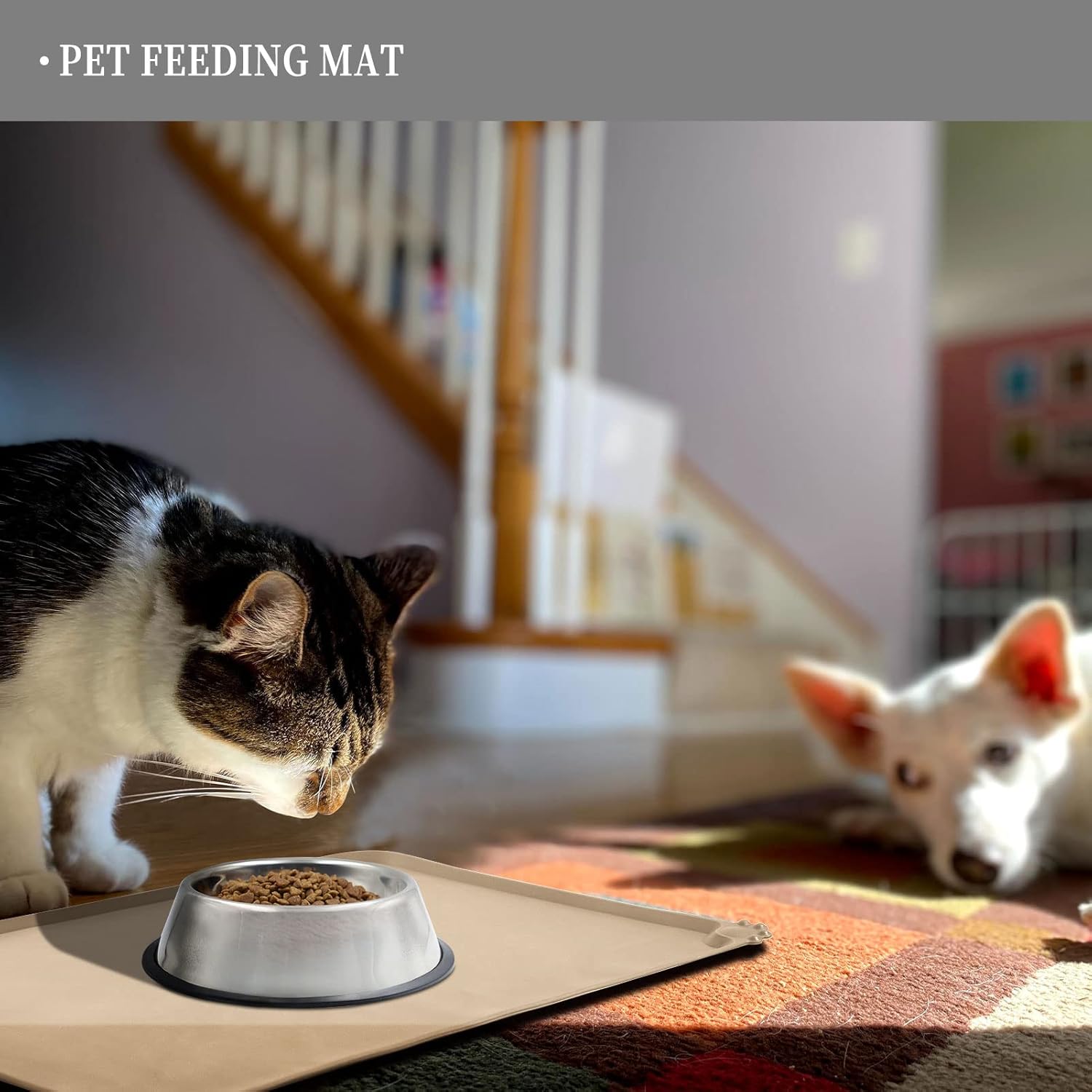 • Anti-slip design: our non-slip pet feeding mat ensures stability for your pet's bowl, preventing any water stains or spills on the floor. Enjoy peace of mind when feeding your pet, knowing that their food stays in place