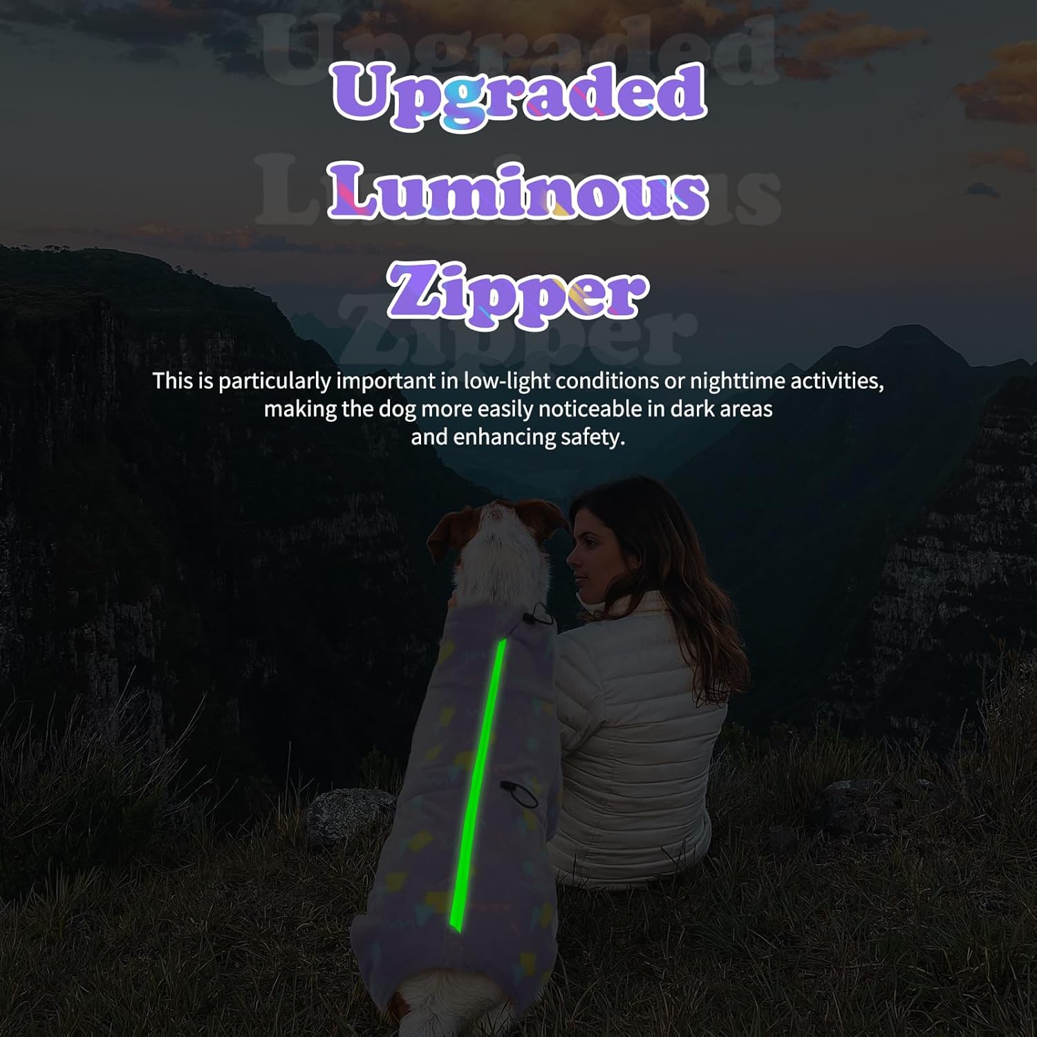 ROZKITCH Dog Winter Coat Soft Fleece Pullover Pajamas, Pet Windproof Warm Cold Weather Jacket Vest with Luminous Zipper, Jumpsuit Apparel Outfit Clothes for Large Giant Dog Geometry 3XL